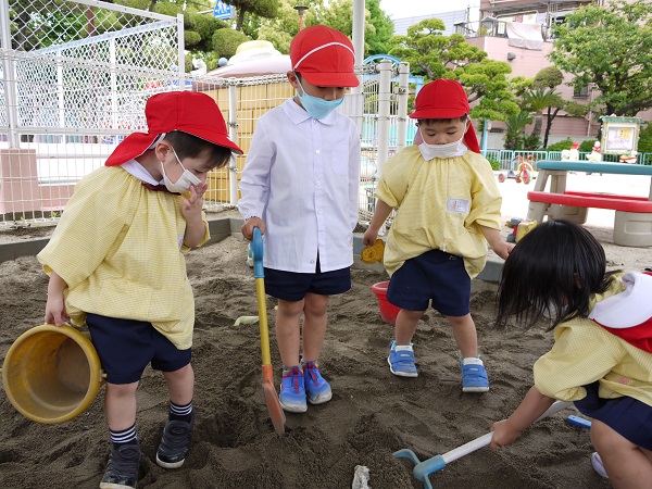子どもたちの間ではダンゴムシブームが訪れ、五感を使って季節の変化を感じたり、お砂場での宝探しに夢中になったりと、連休明けも元気いっぱいです(^^)