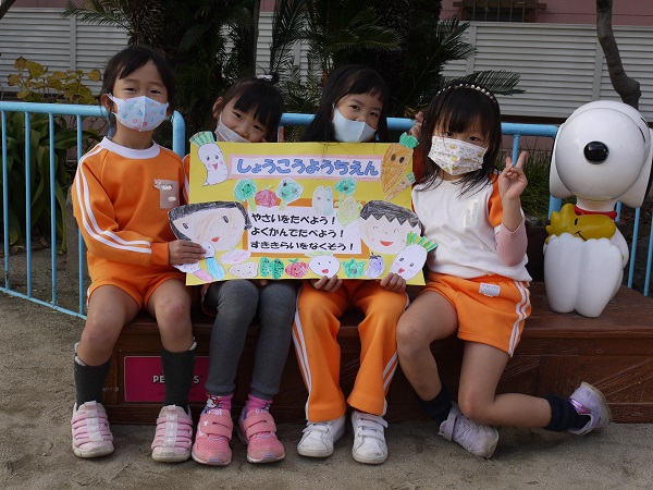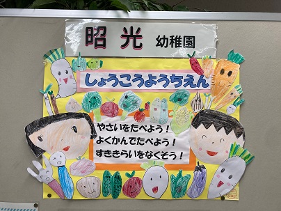 当園では、子どもたちが描いた野菜がいっぱいのかわいいポスターを作成しました(^o^)