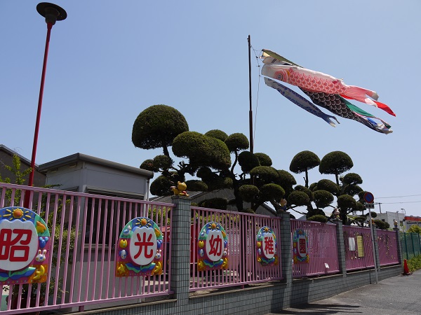 若葉のまぶしい季節となりました。園庭では、大きな鯉のぼりが泳ぎ、ツツジやあやめの花がきれいに咲いています。