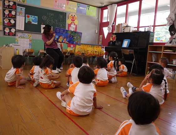 お部屋では大きな絵本で織り姫と彦星のお話を聞き、「たなばたさま」の歌が聞こえてきて風情たっぷり(^^)