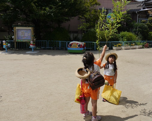 園では、笹と願いを込めて作った笹飾り・短冊を持ち帰ります。
