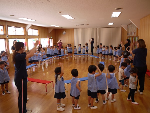 本番では、先生やお友だち、おうちの人とする盆踊り、楽しみだね!