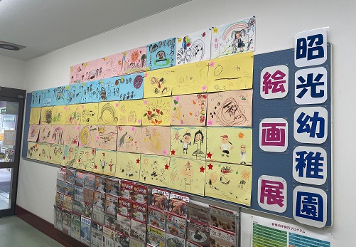夏休みの間、南恩加島郵便局にて園児たちが描いた絵画展が開催されました。