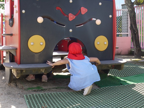 かくれんぼでは、消防車の下にみんなで一緒に隠れている姿が、なんとも微笑ましいですね(^^)