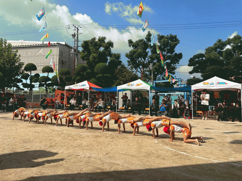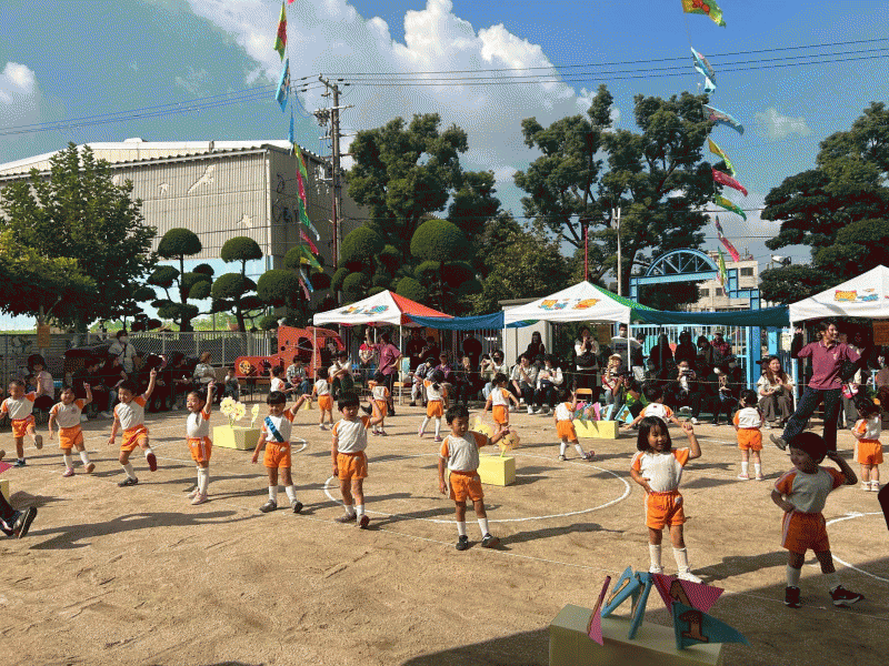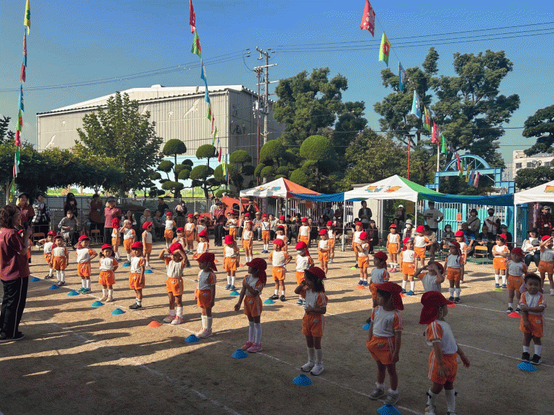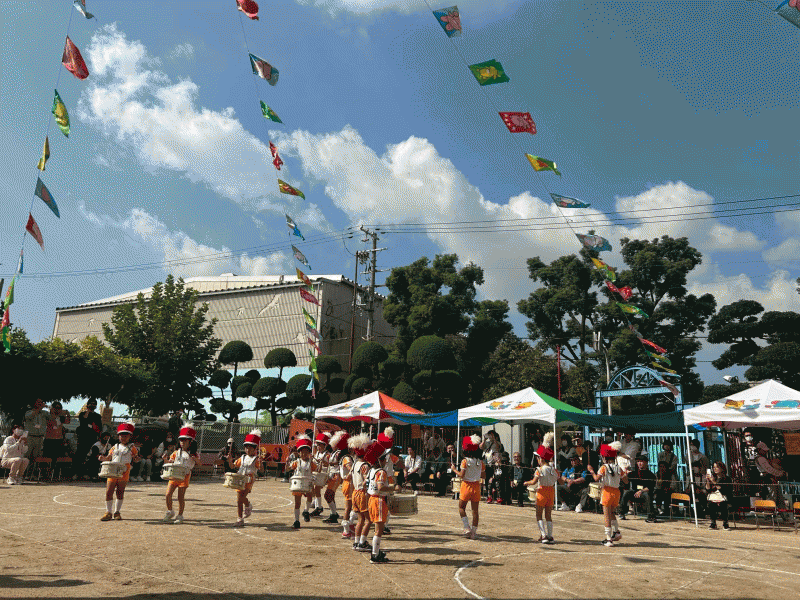 かけっこやリレー、サーキット、お遊戯、リボン体操、鼓隊、組体操など、4年ぶりに全クラス合同でできた運動会は、盛り沢山!!!