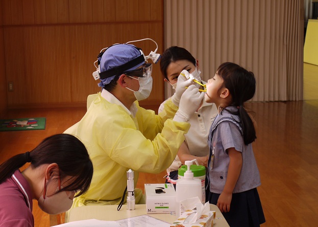 園では、先週から検尿や眼科、歯科、内科と健診が続き、今日は耳鼻科健診がありました。