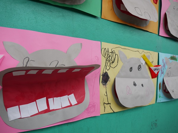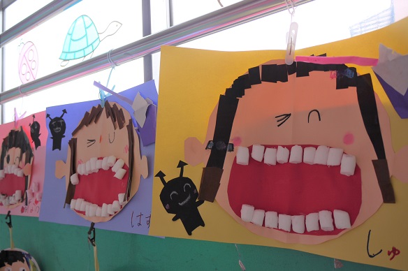 健診の他にも、お部屋で歯の健康についての絵本を読んだり、歯磨きの製作をしたりと、みんなで楽しくお勉強しました。