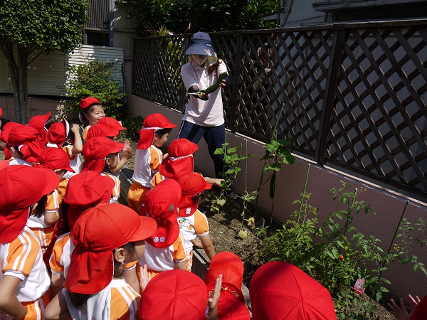 バケツにつかまえて楽しむ子や、手にのせてじっと観察する子など、それぞれの楽しみ方があるようです(^^)
