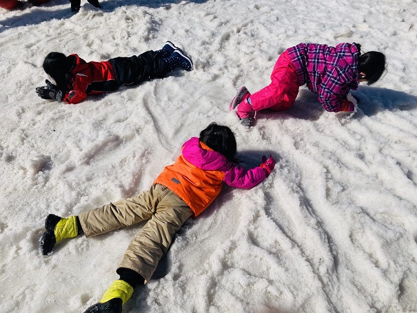 お昼ご飯の後は、アスレチック遊びやいろんな雪だるまを作ったり、はたまた雪の上で大の字に寝転んだり?思う存分雪遊びを楽しみました!!!