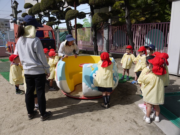 みんなでお外遊びをするために、園庭の遊具の正しい使い方のお勉強です(^^)