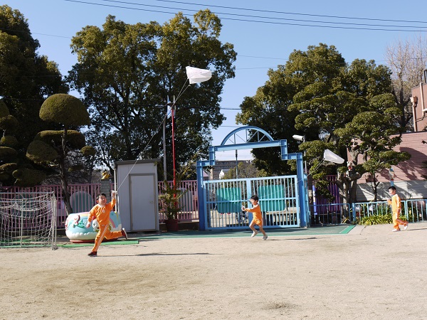 走り回りながら、「わー!あがったー!!」と笑顔いっぱいの子どもたち(^^)