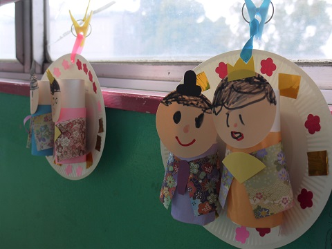 保育室には子どもたちが作ったひな人形が、可愛く並んでいます(^^)