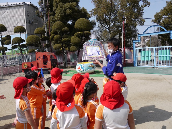 子どもたちの一年間の成長を優しい笑顔で見守っていてくれているようです。