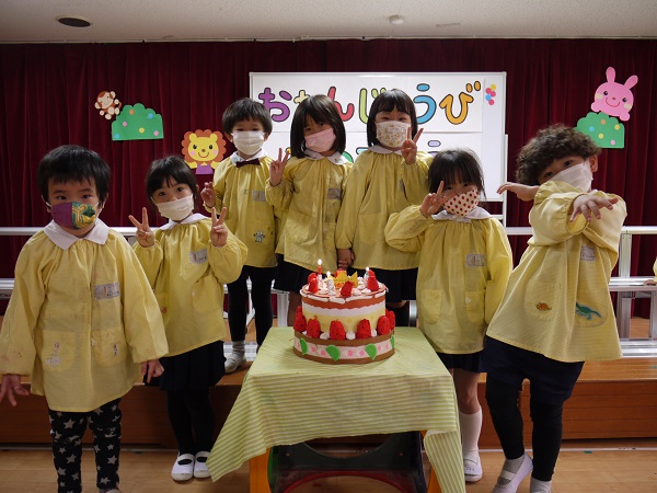 1・2・3月生まれのお友だちのお誕生会をしました。