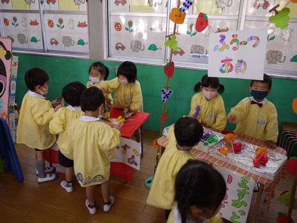 「いらっしゃいませ〜!」と大きな声で店員さんになりきっているお友だちや、お財布を手に何を買おうか悩んでいるお友だちも(^^)