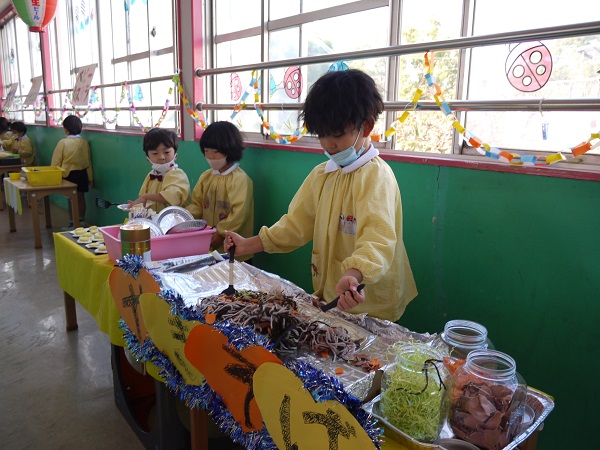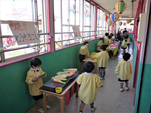 年長クラスは、焼きそば、焼き鳥、たこ焼き♪