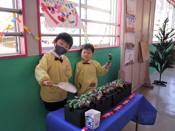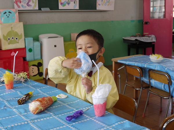 年中クラスは、ベビーカステラ、焼きトウモロコシ、かき氷、タピオカドリンク、ジュース屋さん♪