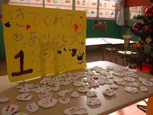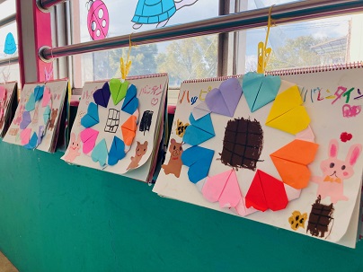 子どもたちお手製のハートがいっぱいの製作、とっても可愛くできました!!