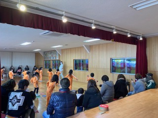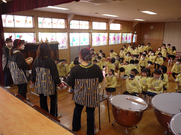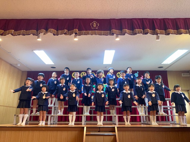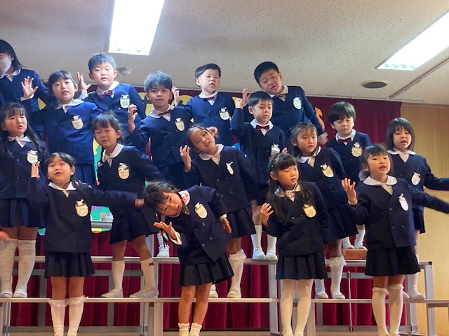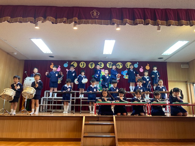 おうちの人の前でみんな緊張しながらも立派に発表できた後は、シャンシャンシャン…と鈴の音が!