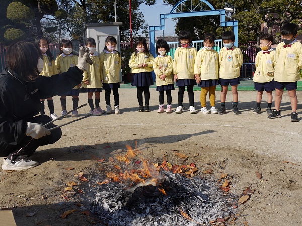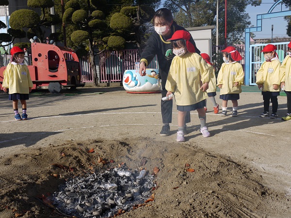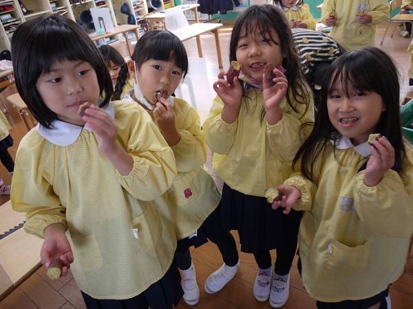 雨が心配されましたが、暖かい陽気の中、園庭にて焼きいも大会を行いました。