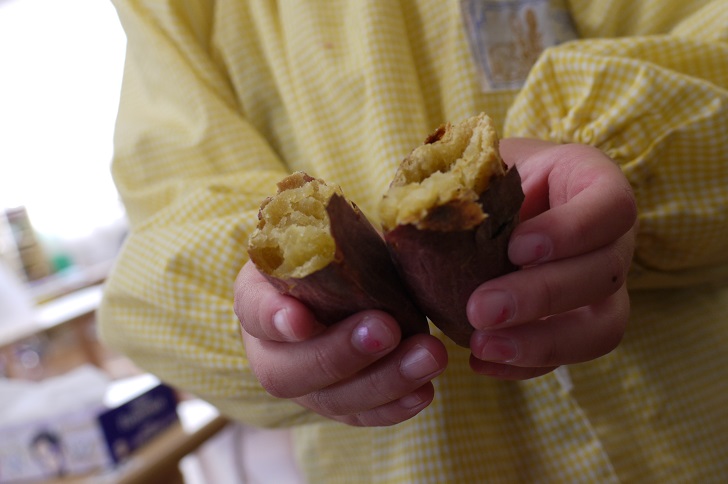 暖かい火にほくほくのおいも、体でめいっぱい季節を感じてくれたようです(^^)