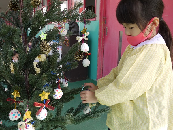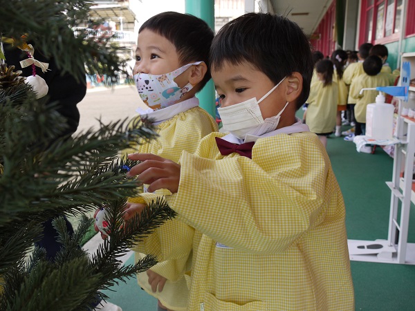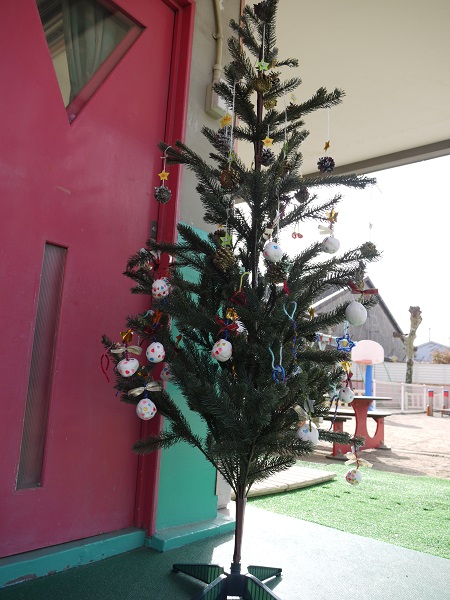 もうすぐやってくるクリスマスにむけて、園ではクリスマスツリーを飾っています。
