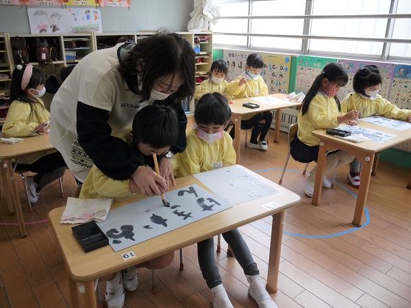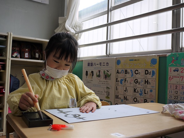 お絵かきではない、筆で文字を書くという、いつもとはまた違った感覚を楽しんでいたようです。
