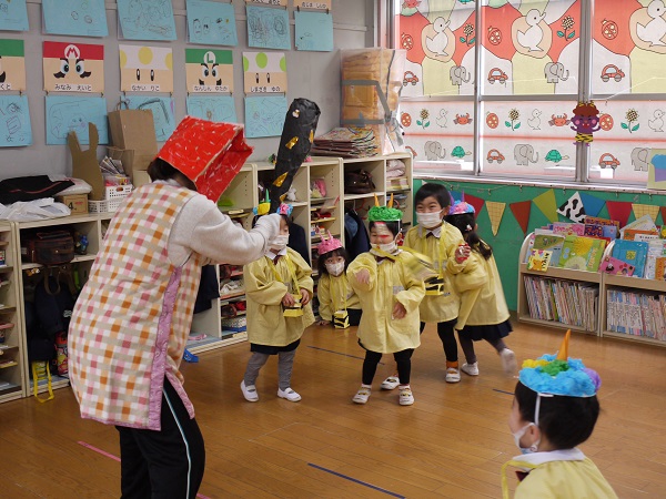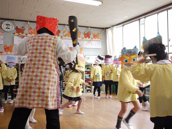 「おには外〜福は内〜!」とみんなのパワーでおにもたちまち降参です!