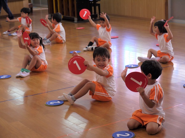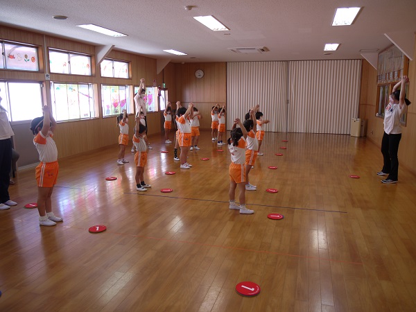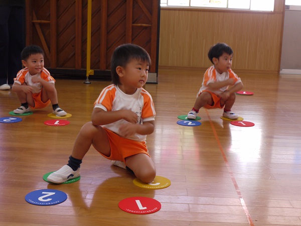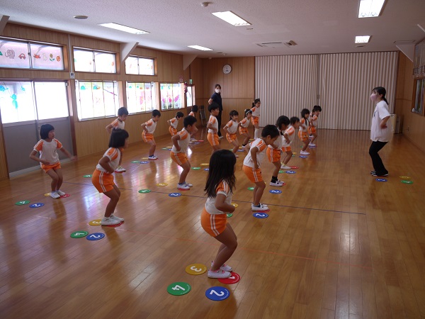 年少・年中・年長、それぞれの年齢に合わせた内容で、準備体操をした後は、基本的なステップから始まります。