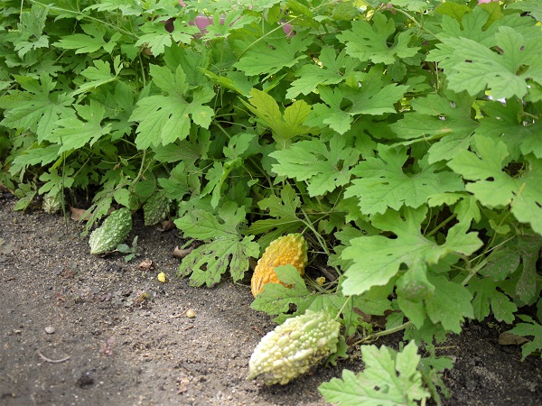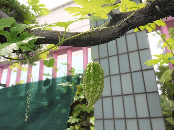 夏に植えたゴーヤの種が育ち、大きな実ができました!