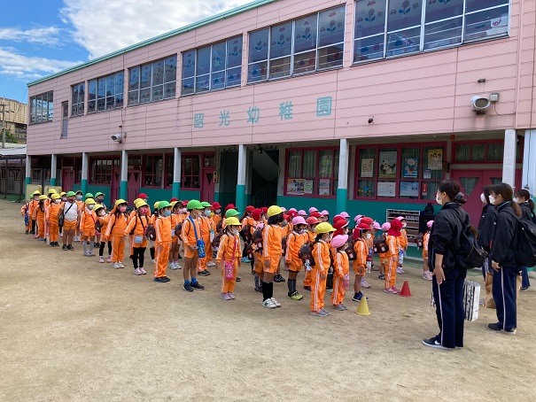 しっかり確認して、手を上げてみんなきちんと歩くことができました(^^)