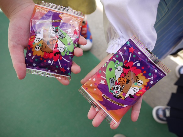 お菓子をもらって、大喜びのみんなの笑顔が弾けていました(^o^)