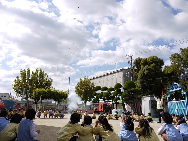 お祝いした後には、園庭でみんなお楽しみの「打ち上げまりも」をしました!