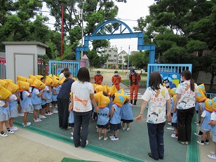 上手に避難出来て、消防士さんに褒めていただきました。