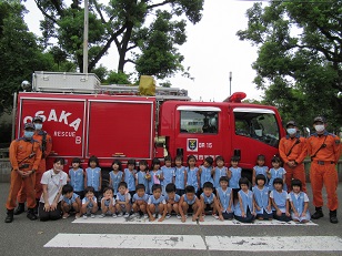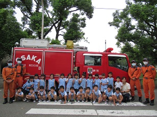 大きな消防車を見学して、子どもたちは大喜び!!