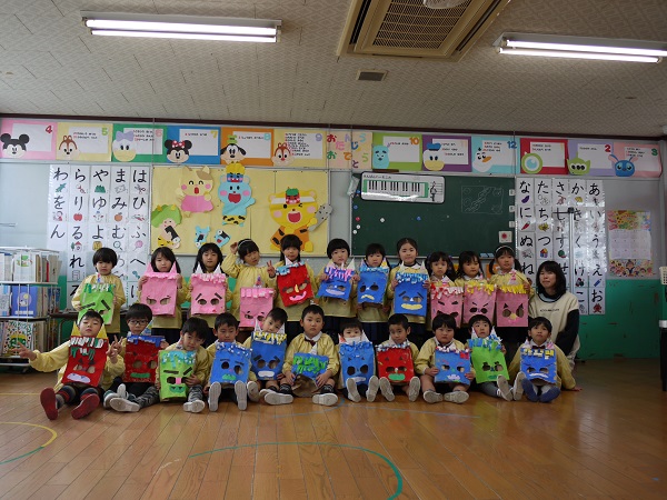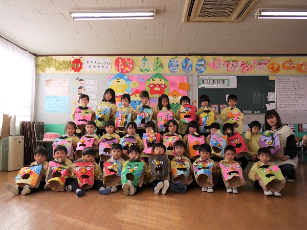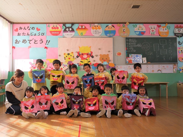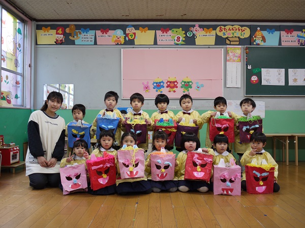 元気な掛け声と共に力一杯豆まきを楽しんだ子どもたち。