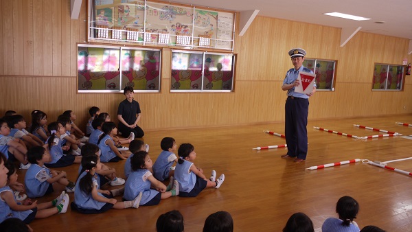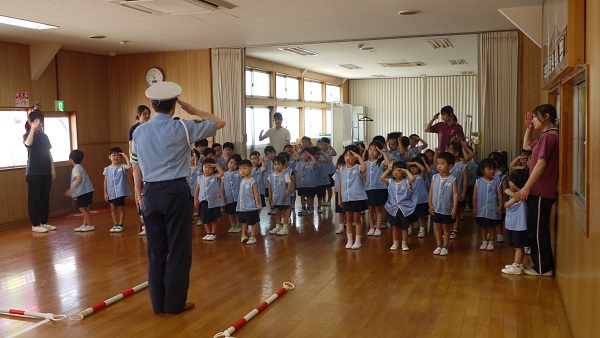 大正警察 交通安全課のお巡りさんの指導により、交通安全教室を開催しました。