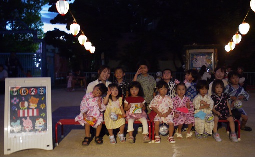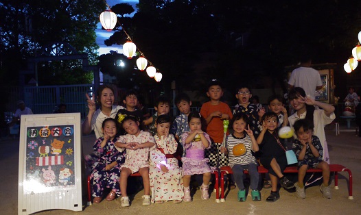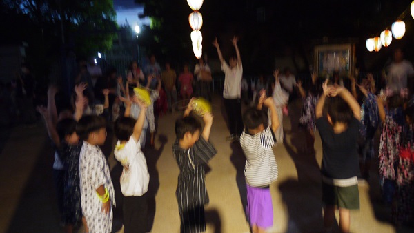 最後は、子どもたちが楽しみにしている納涼大会の盆踊りをみんなで練習して、大盛り上がり!!