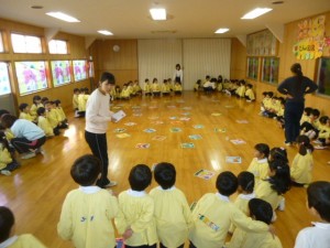 今回のお楽しみは縦割りクラスで大きなかるた大会でした。