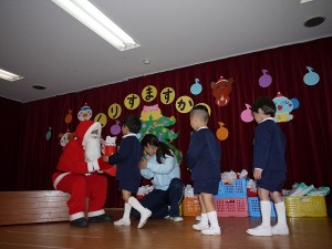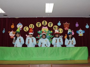 クリスマス会で舞台に慣れたのか、緊張もせずに大きな声で自己紹介や大きくなってなりたいものを話していました。
