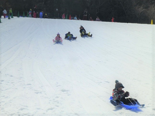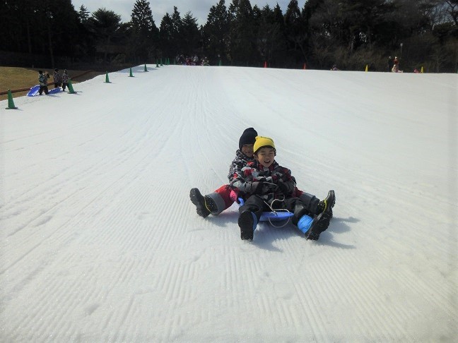 早速雪ゾリに乗ってゲレンデを滑ります。
