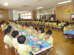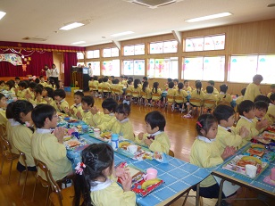最後はみ〜んな一緒にパン給食をいただきました♪