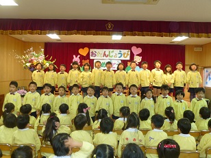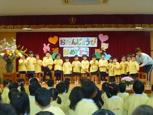 優勝はひまわり組でした(^^)/11月・12月生まれのお友だちのお誕生会がありました。