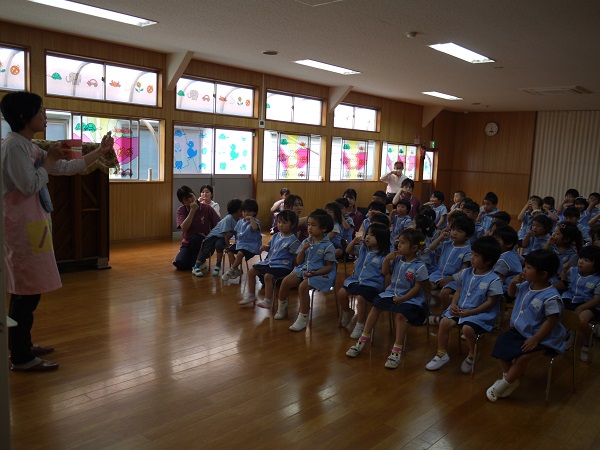 歯科医師、歯科衛生士の方が来園され、子どもたちに虫歯予防についてお話をしていただきました。