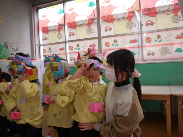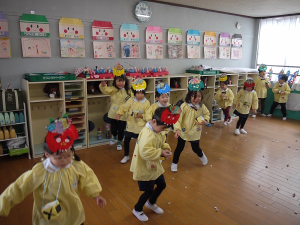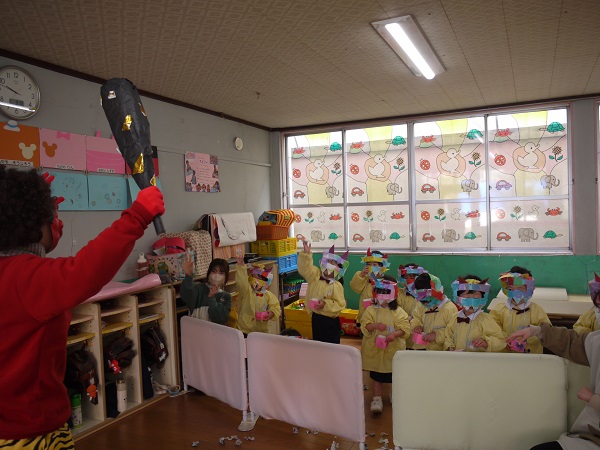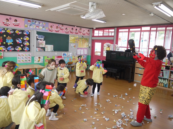 幼稚園では2月3日に豆まきをしました!!