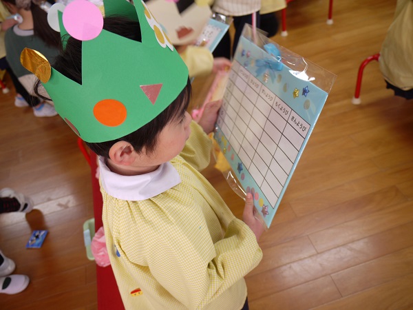 幼稚園で楽しかったこと・小学生になったら頑張りたいことを堂々と発表し、年長さんらしい頼もしい姿でした!