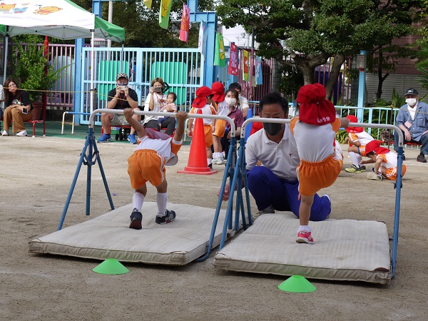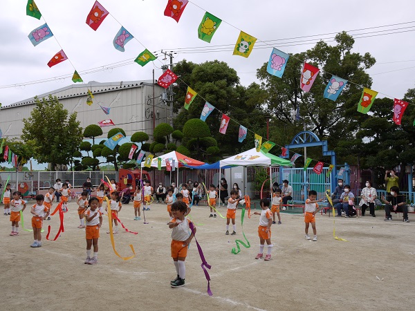 かわいいお遊戯やリボン体操、親子競技もあれば、真剣な表情の鼓隊、組体操、リレーなどなど盛り沢山!