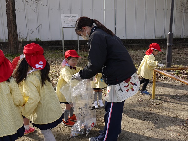 園では例年通り、南恩加島公園にて園児みんなでゴミ拾いをしました(^^)